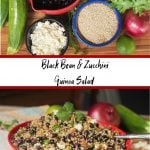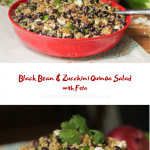 Black Bean and Zucchini Quinoa Salad can be served as a cold salad or heated up. It’s perfect as a side dish, a main course at lunch, or a potluck dish and offers something a little different than your average salad recipe. Plus it’s ready in 30 minutes.